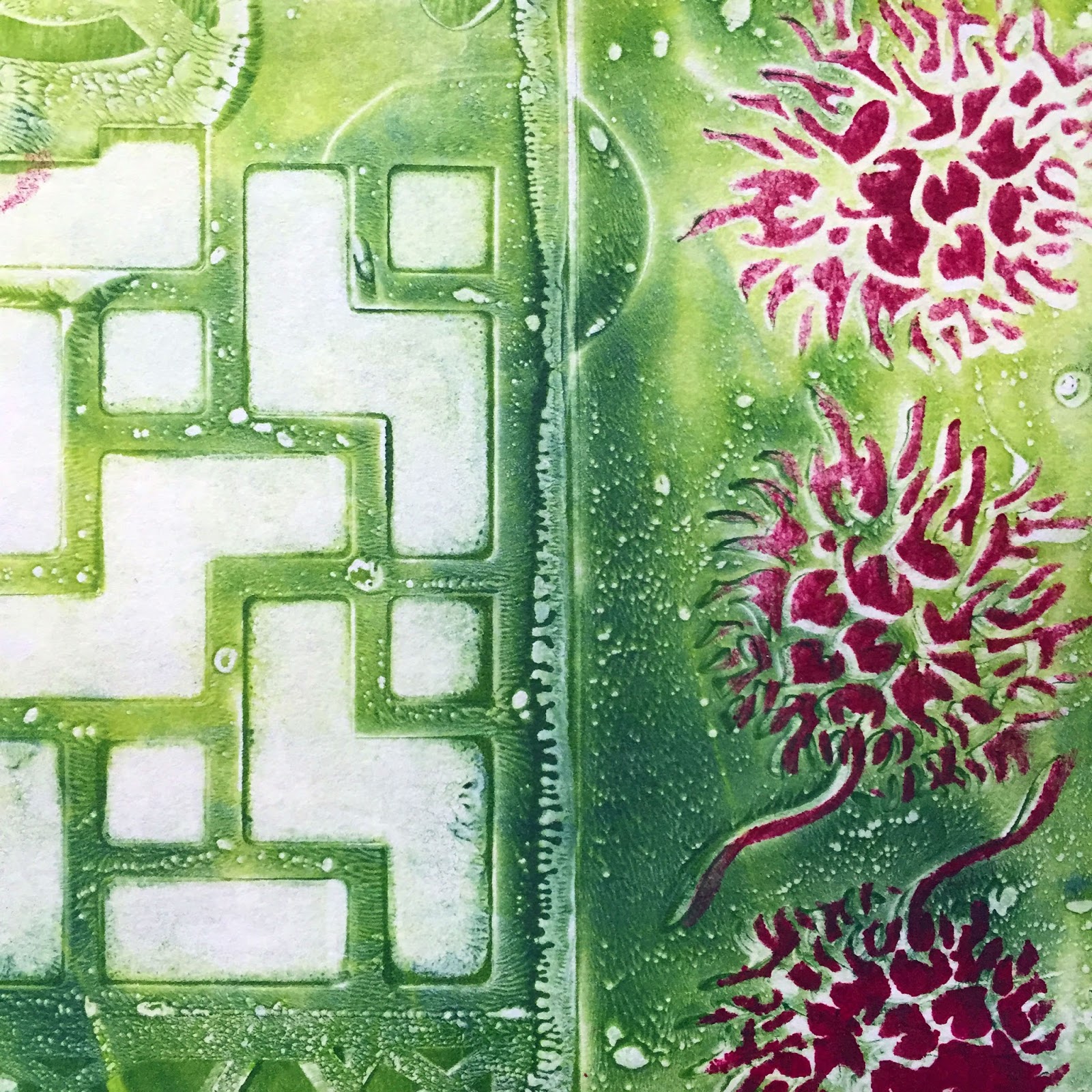 | "Garden Patch: Coral and Green" by Jane LaFazio (12x12 inches $175. in my JaneVille Etsy shop) |