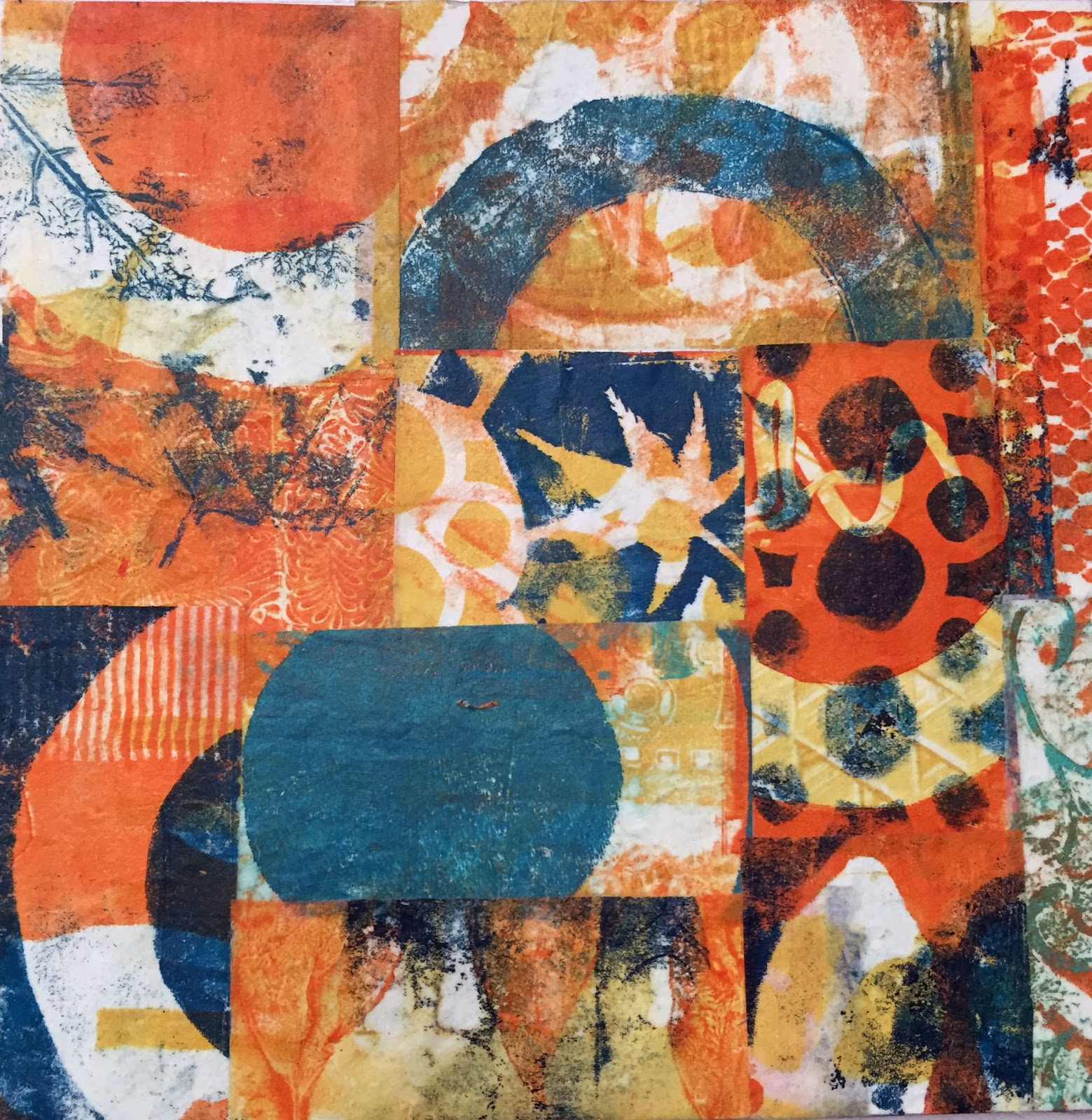| "Indigo & Rust" Recycled Circles by Jane LaFazio (12x12 inches $125. in my JaneVille Etsy shop) |